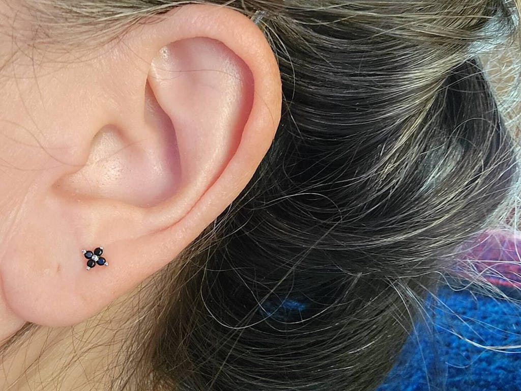 Blumen Ohrstecker - Die süssesten kleinen Blumen Zirkonia Ohrringe, die du jemals gesehen hast. Perfekt zum Kombinieren mit anderen Creolen oder Ohrsteckern. Du hast die Wahl aus einem einzelnen Ohrring (super zu kombinieren mit den anderen schwarzen Zirkonia Ohrringen aus unserem Shop) oder dem Paar (2 Ohrringen). Hergestellt aus hochwertigem 925 Sterling Silber, besetzt mit 4 schwarzen Zirkonia und Sterling Silber Verschlüssen.