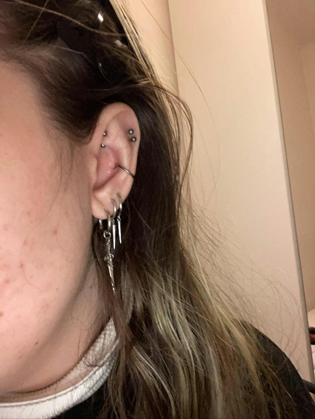- Verbogene Teile: Durch Druck, Hängenbleiben oder Stöße verbogene Stecker, Dornen von Creolen, Ringe oder Piercing-Tops – alles, was sich durch äußere Einwirkung verformt hat.