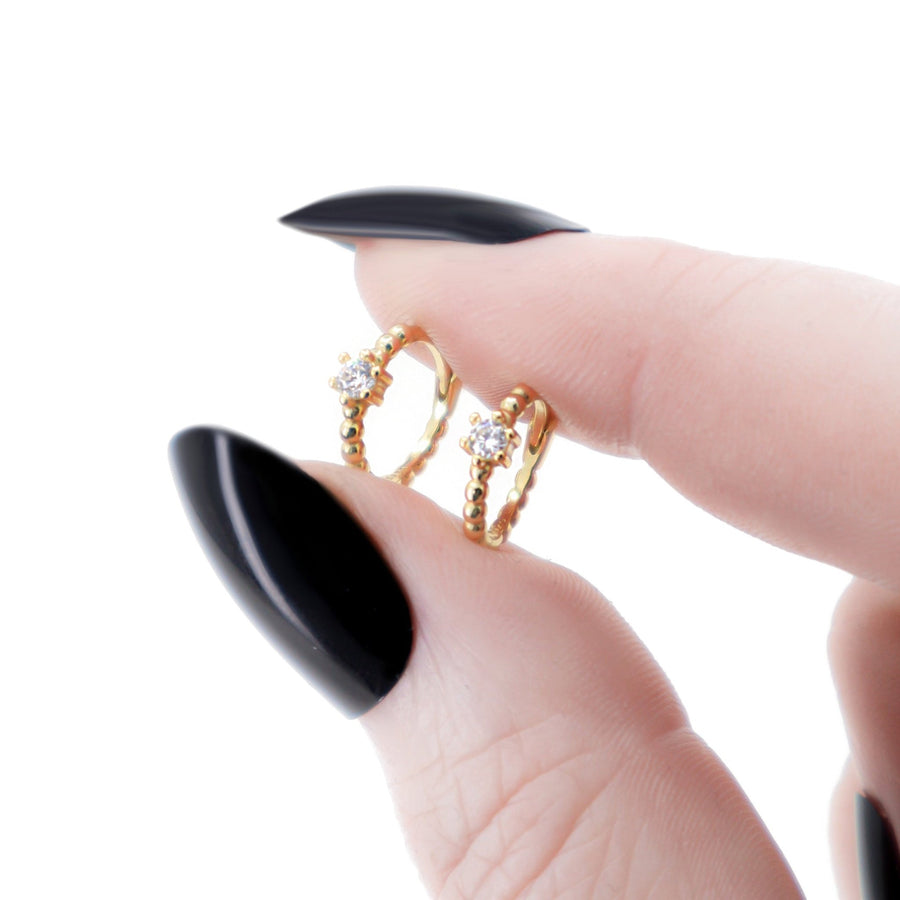 Solitär Boho Creolen Gold Weiß