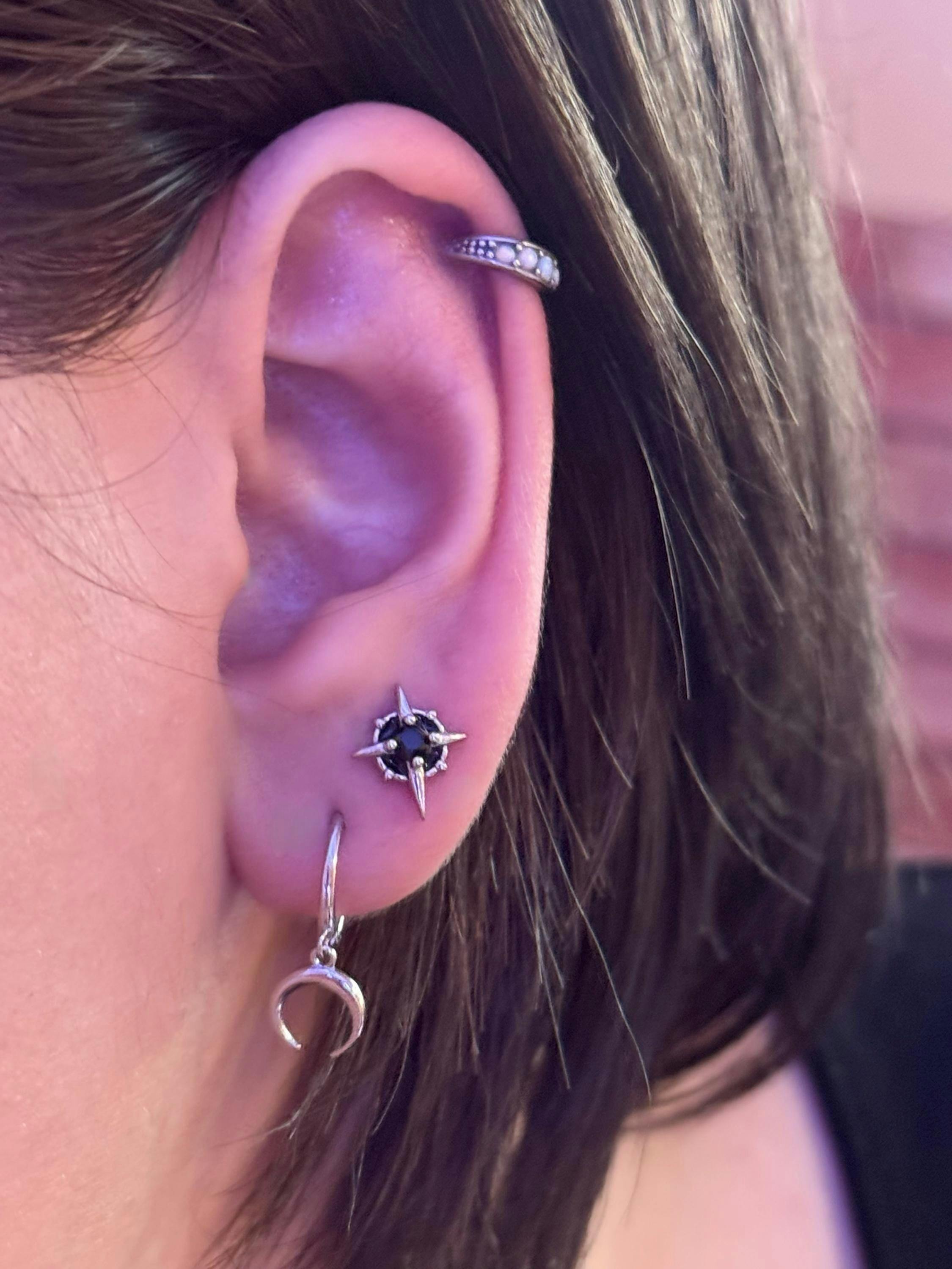 Gothic Stern Ohrstecker Zirkonia Schwarz