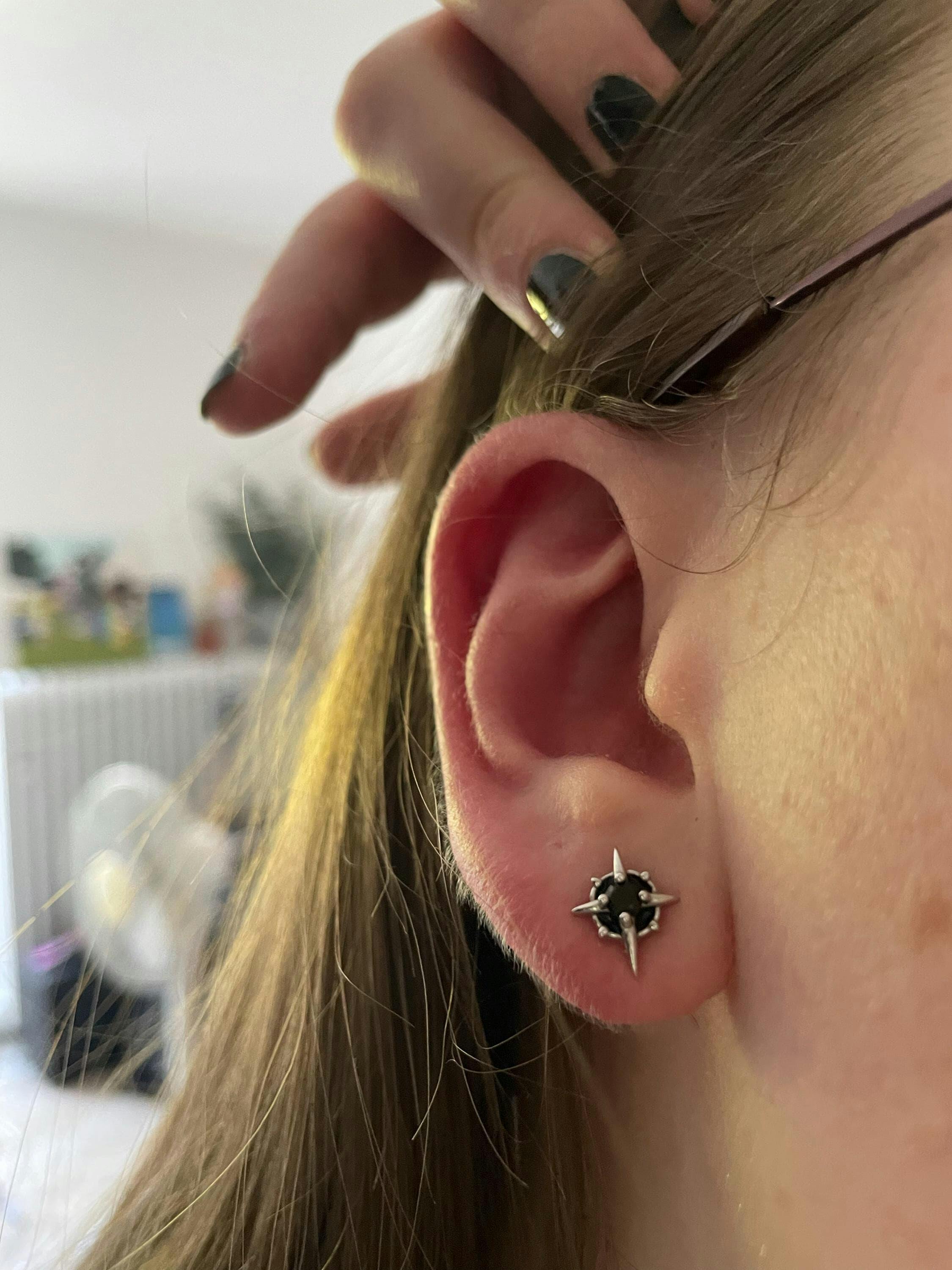 - Verbogene Teile: Durch Druck, Hängenbleiben oder Stöße verbogene Stecker, Dornen von Creolen, Ringe oder Piercing-Tops – alles, was sich durch äußere Einwirkung verformt hat.