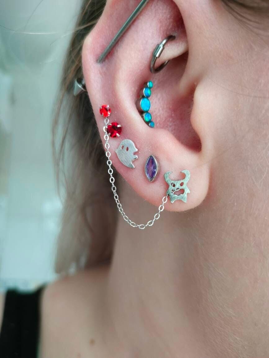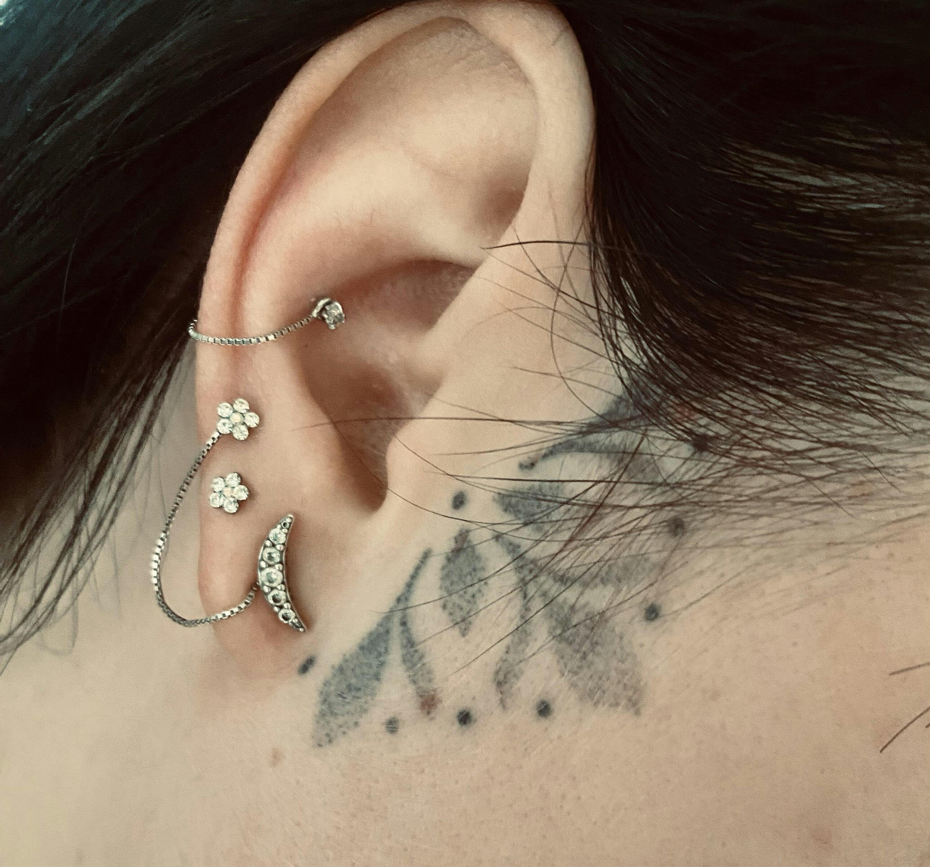 Ohrring Kette - Klein, fein, minimalistisch & Rock'n Roll zugleich. Diese feine Ohrring Kette kann auf viele Arten an jedem Ohrstecker befestigt werden (Ohrring nicht inklusive): 2 Ohrstecker verbinden, mehrere Ketten kombinieren, als Conch Piercing Kette oder vorne und hinten einem einzelnen Ohrstecker befestigen, um mit der Ketten eine Schlaufe zu kreieren. Dieses kleine, glitzernde Ohr Accessoire gibt direkt einen WOW Faktor und pimpt deinen schon vorhandenen Schmuck auf. Feine Ketten aus Sterling Silber, verfügbar in 30 mm, 40 mm und 50 mm Länge.