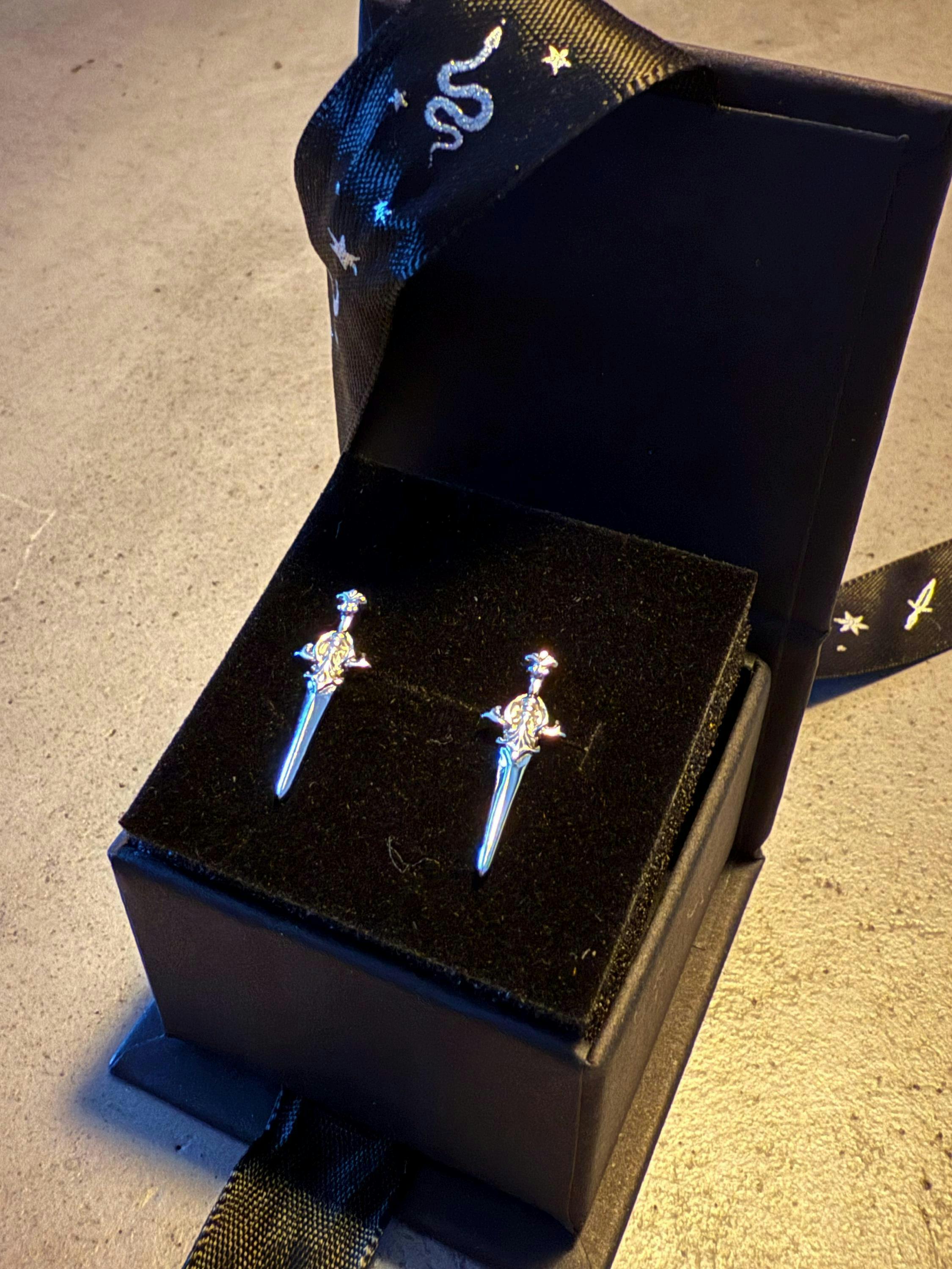 ✶ Feines Statement - wundervoll verzierte Schwert Ohrstecker, Komplimente garantiert!